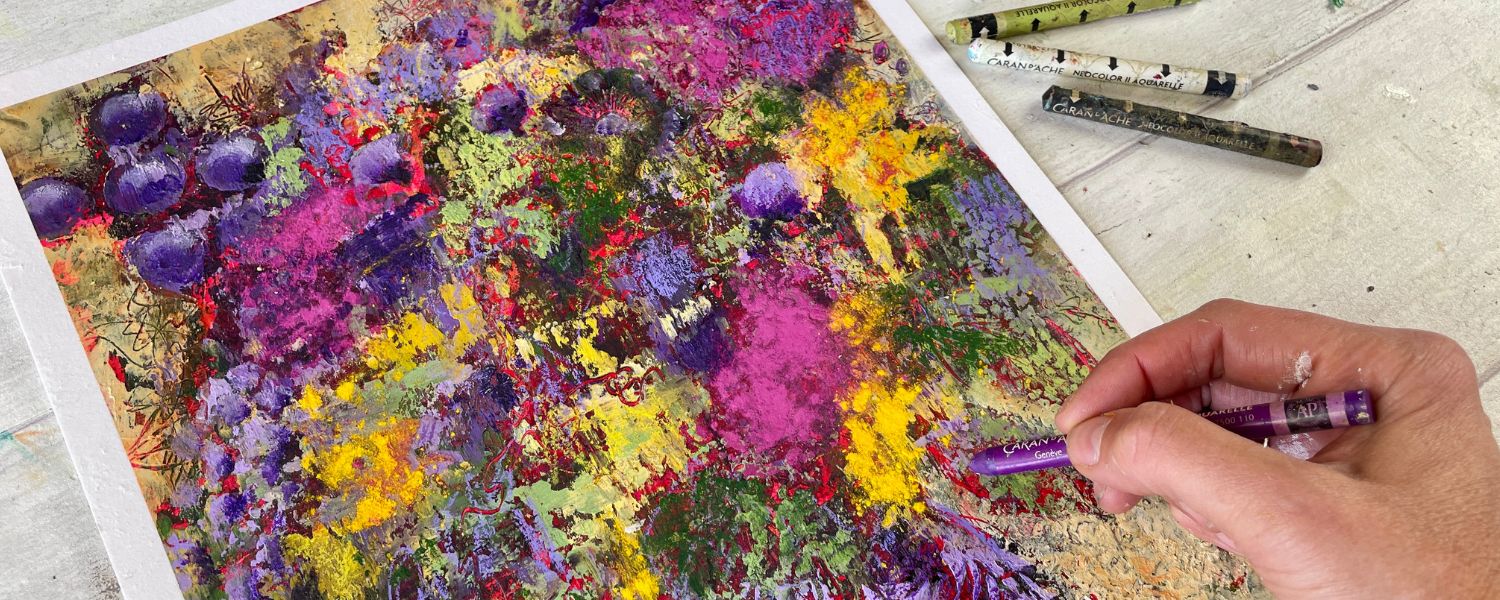 Follow along as I build layers of rich oil paint and cold wax medium — from textured base to vibrant blooms that practically dance off the canvas.